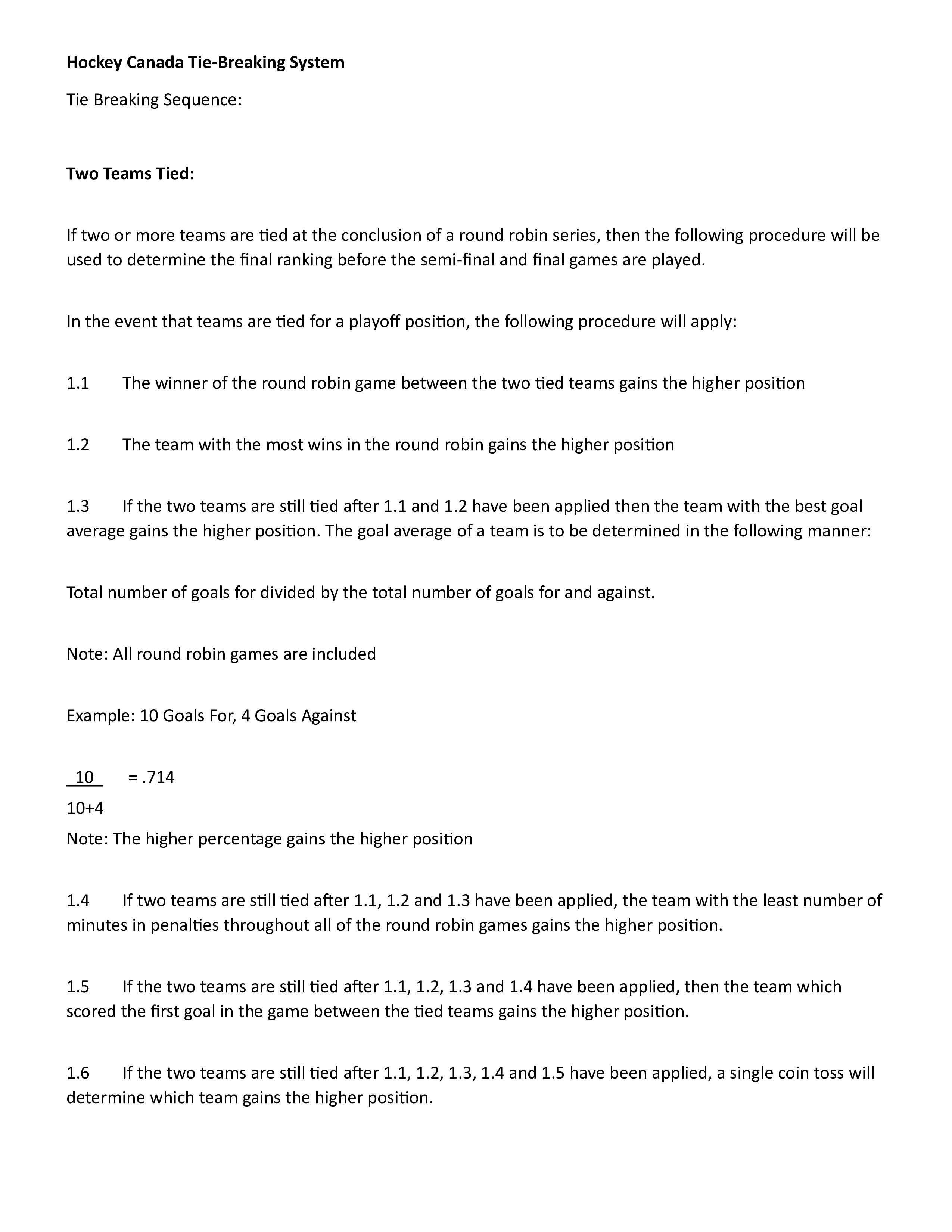 Hockey Canada Tie Breaking Procedure