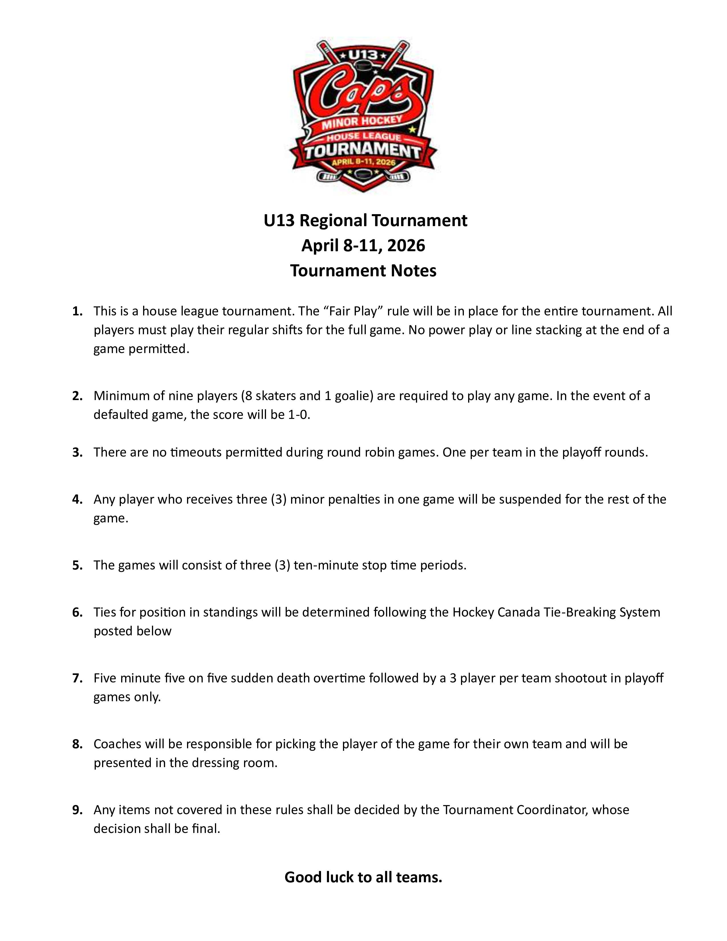 St. John's Minor Hockey Association will be hosting the U13 Regional Tournament April 8-11th.